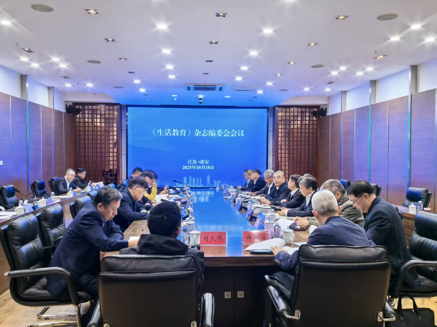 2025年10月18日下午,《生活教育》杂志编委会会议在江苏淮安召开。中陶会会长、《生活教育》杂志编委会主任朱永新,中陶会常务副会长、《生活教育》杂志编委会副主任陈洛,南京晓庄学院党委书记、《生活教育》杂志编委会副主任张策华以及编委会委员参加会议,南京晓庄学院副校长赵向军、《生活教育》杂志执行主编李晓军、中陶会副秘书长李宗主、张卓等列席会议。